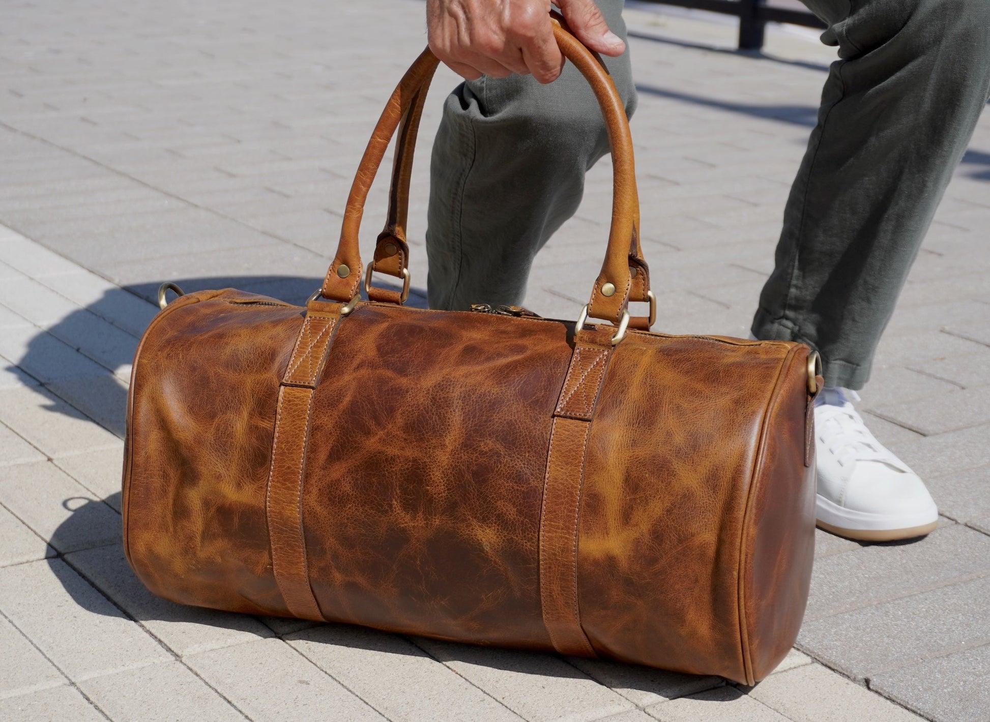 Crafted with 100% full-grain leather. The Toscano companion is a cylindrical duffle designed for short getaways, daily movement, or elevated gym runs. Its sculptural silhouette, rolled handles, and visible stitch detailing give it a clean yet character-rich presence. Minimal but unmistakable.