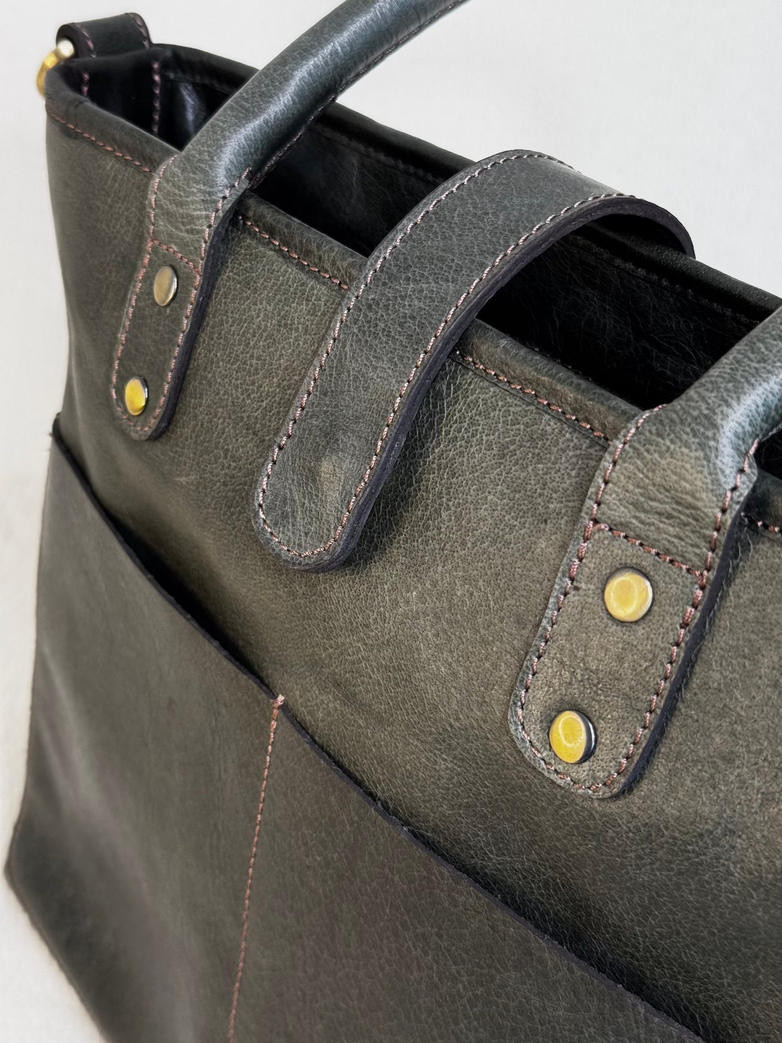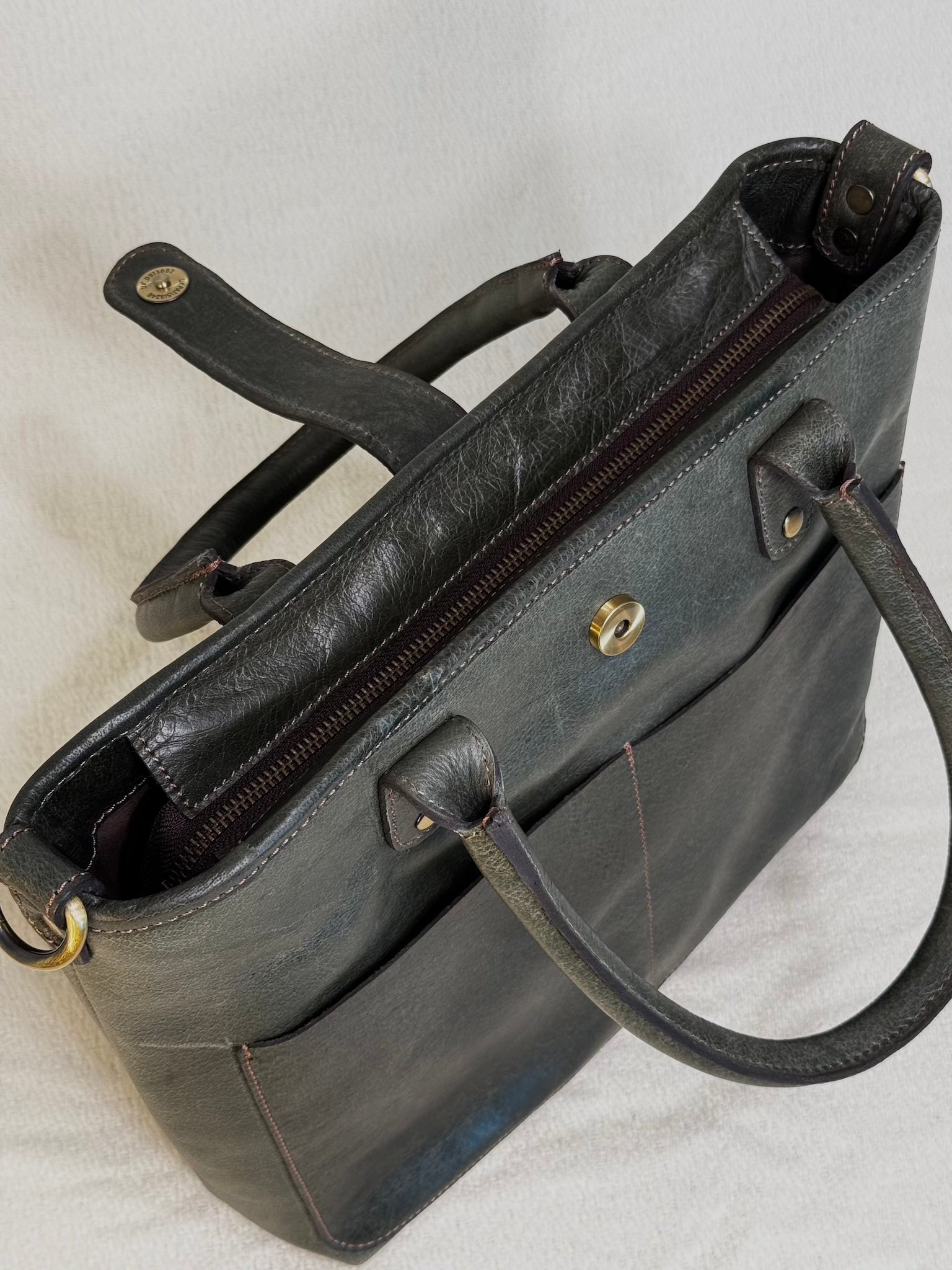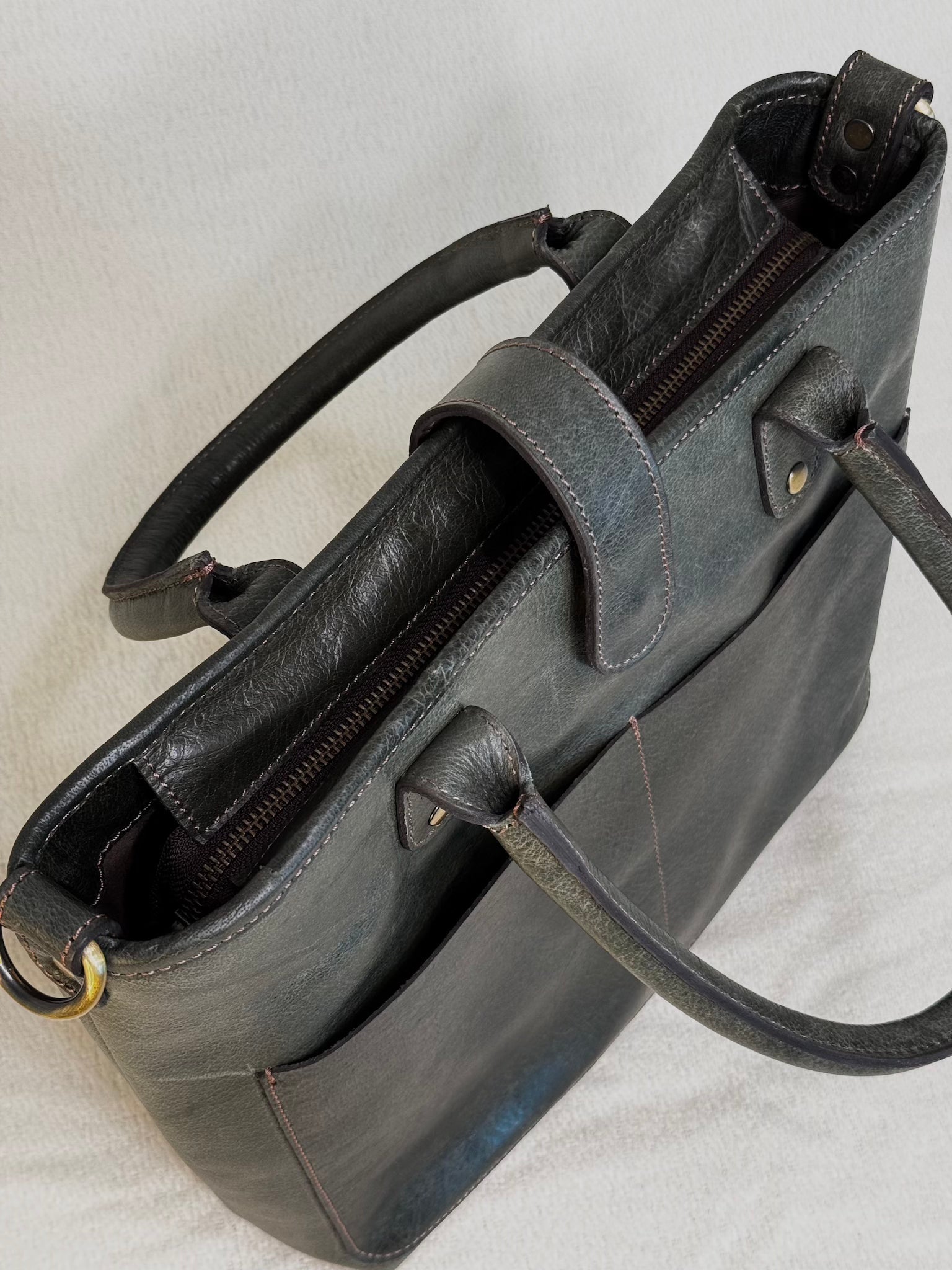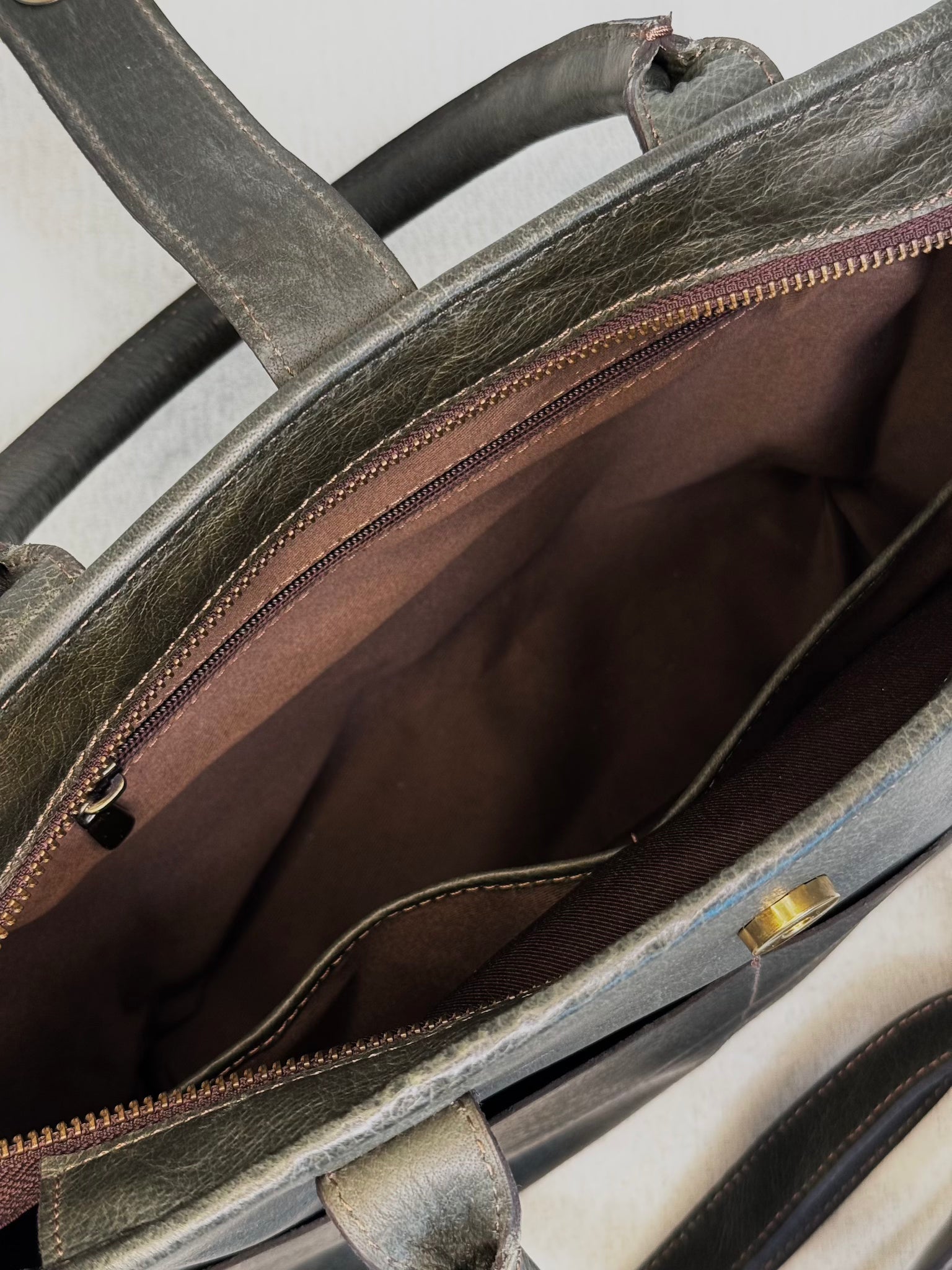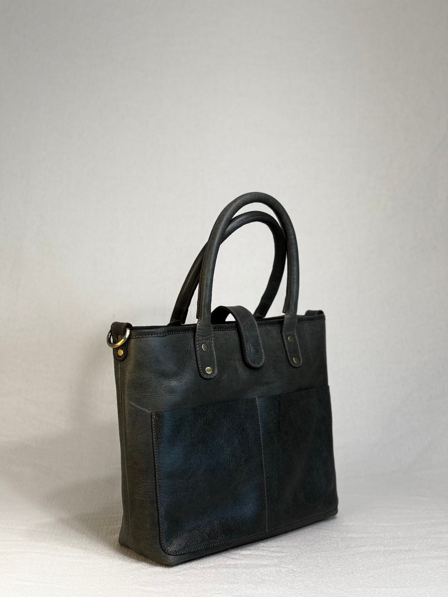 Crafted from 100% full-grain leather, the Bellaria carries a presence that speaks quietly but confidently. Its sculpted 14x10.5x4 inch frame, detailed stitching, and refined top handles make it the kind of bag you reach for every day and still wear for years.