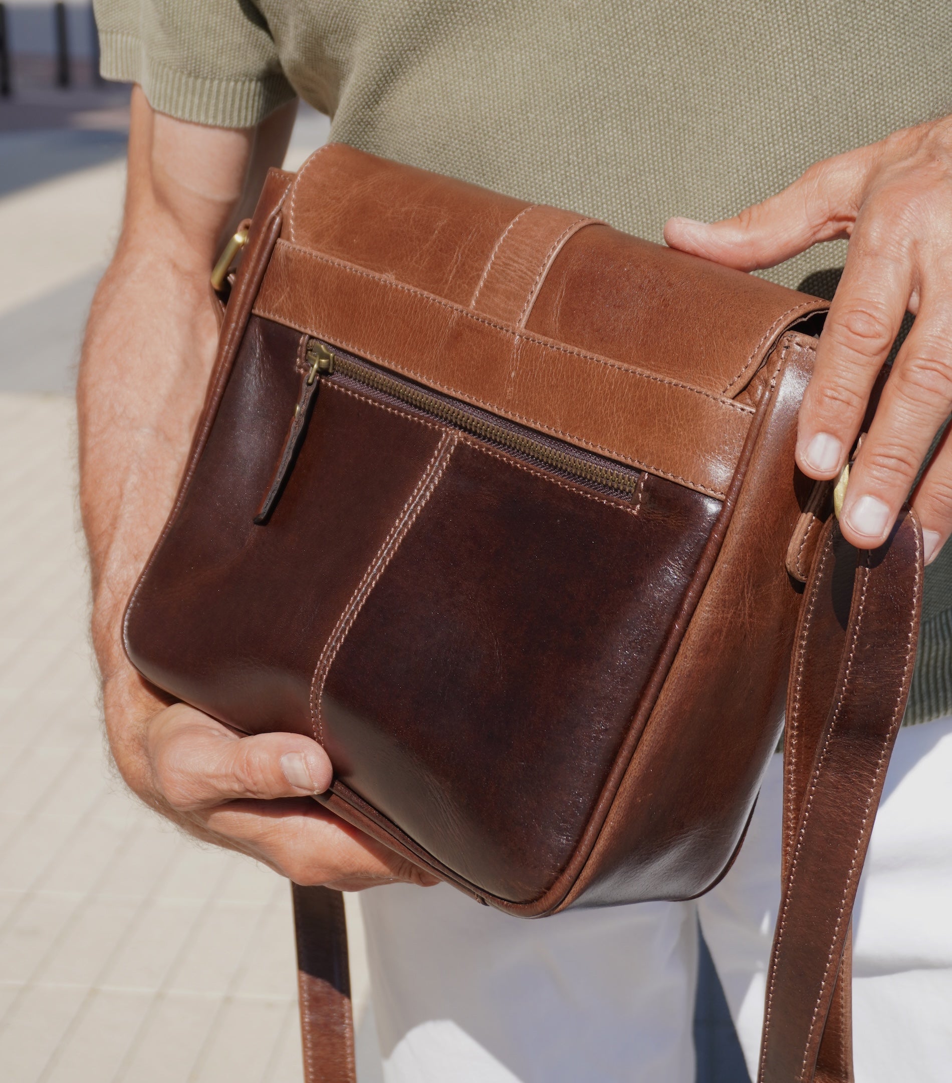 Crafted with 100% full-grain leather. The Capri Satchel is a compact side-worn bag designed for effortless daily carry, whether you're catching a train across Tuscany or stepping into a meeting in the city. Its soft shine, sculptural form, and clever magnetic closure hide behind classic design cues like a front buckle detail and stitched elegance. Timeless utility with a quiet edge.