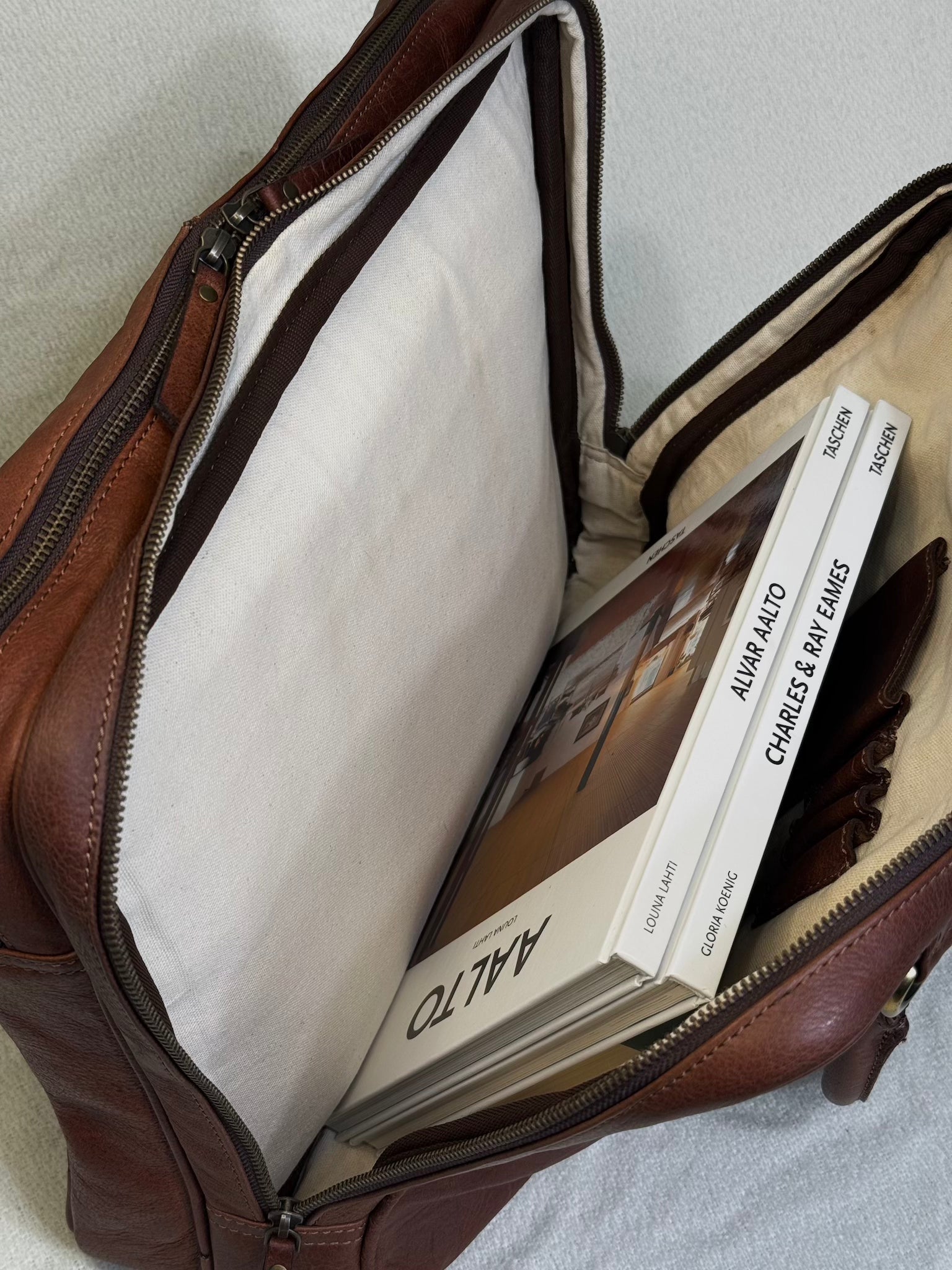 Made with 100% full-grain leather, the Milano Linea is defined by its clean two-tone detailing, a slim leather layer that wraps the handles and underlines the body with architectural grace. Sized at 15.5x12x4 inches, it’s structured, versatile, and beautifully balanced.
