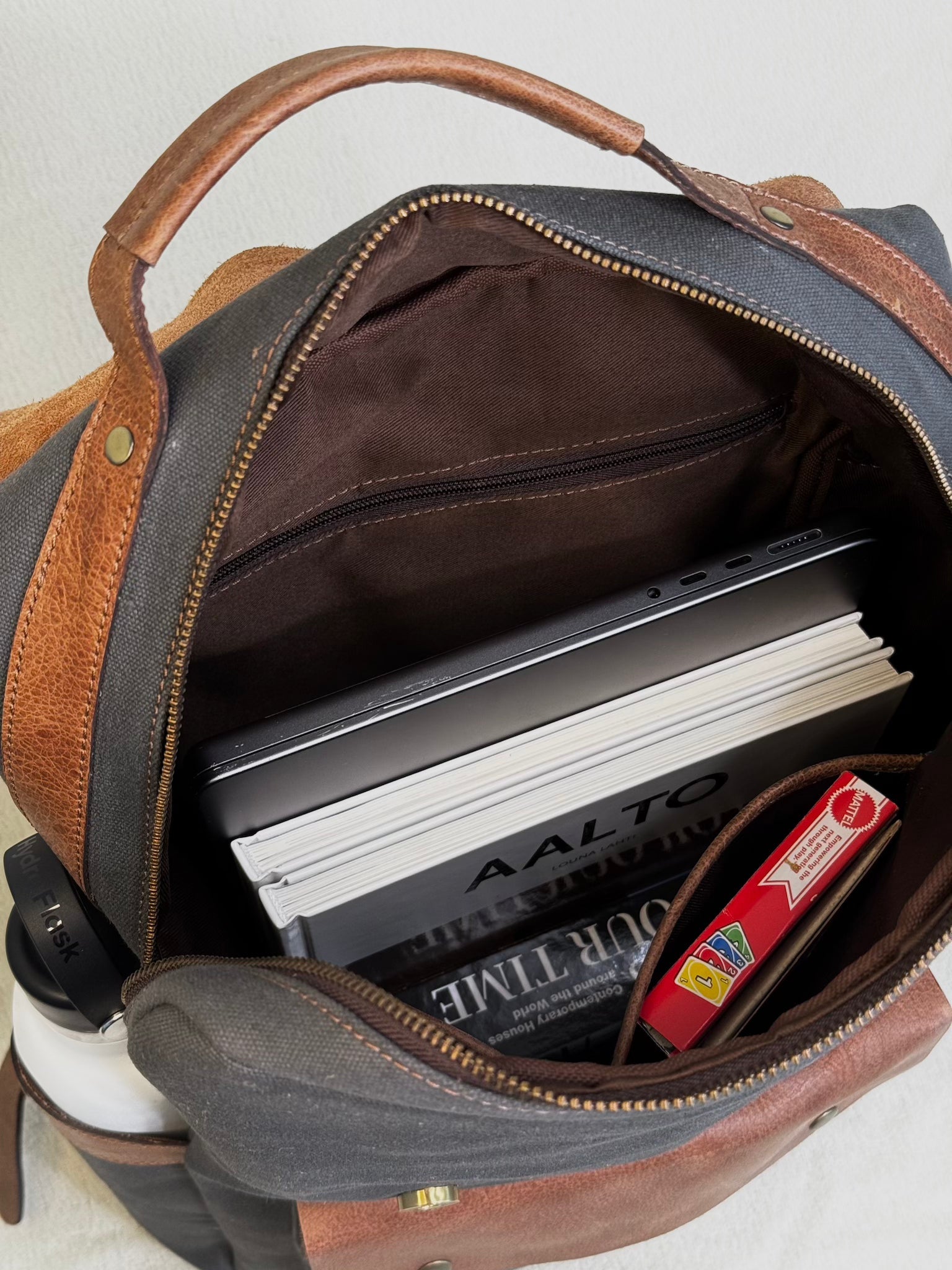 Crafted with 100% full-grain leather and thick, structured canvas that wears in, not out. The Modena was designed to look purposeful in any setting — sharp enough for the office, rugged enough for the weekend.