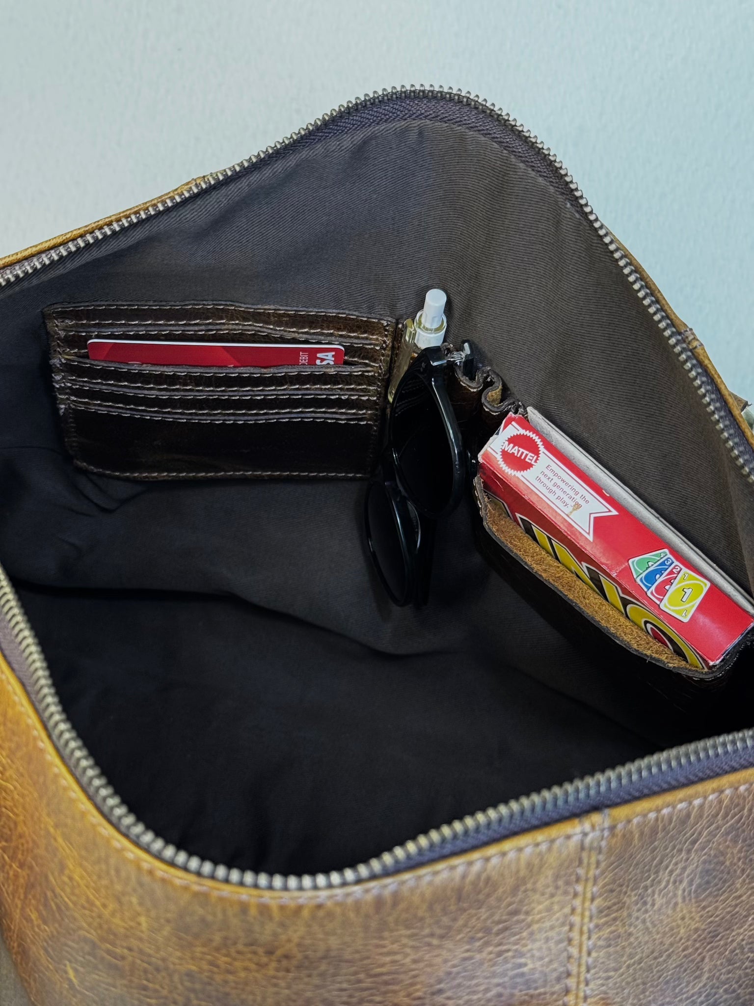 Leather ages beautifully over time. To keep your bag looking its best: