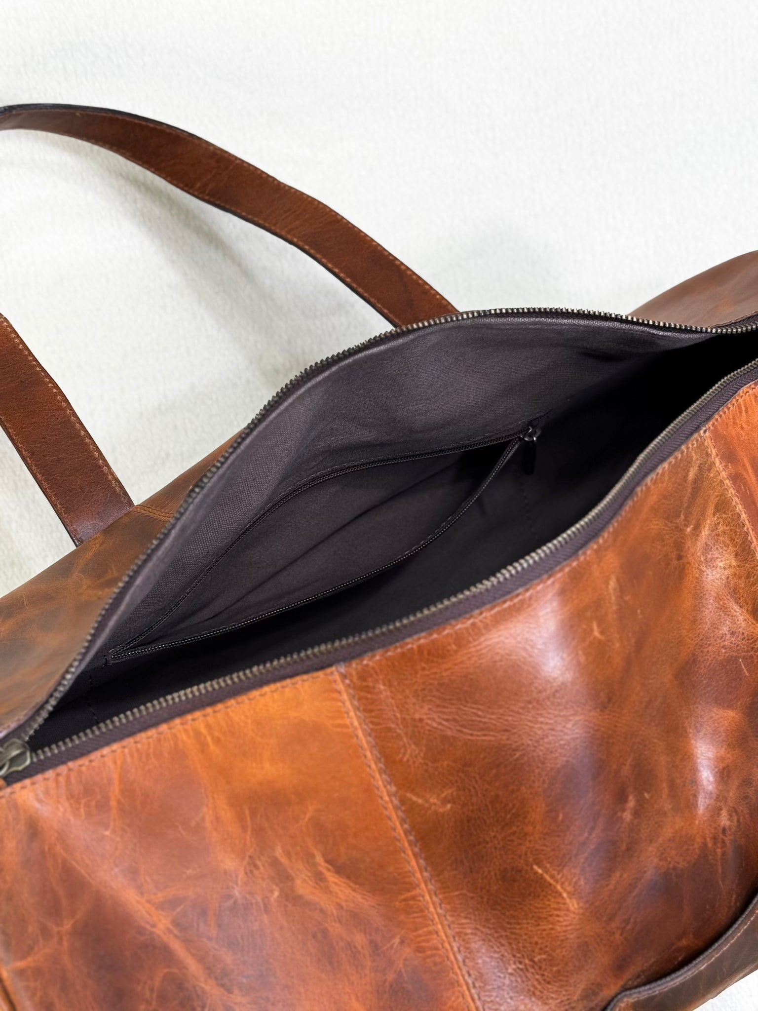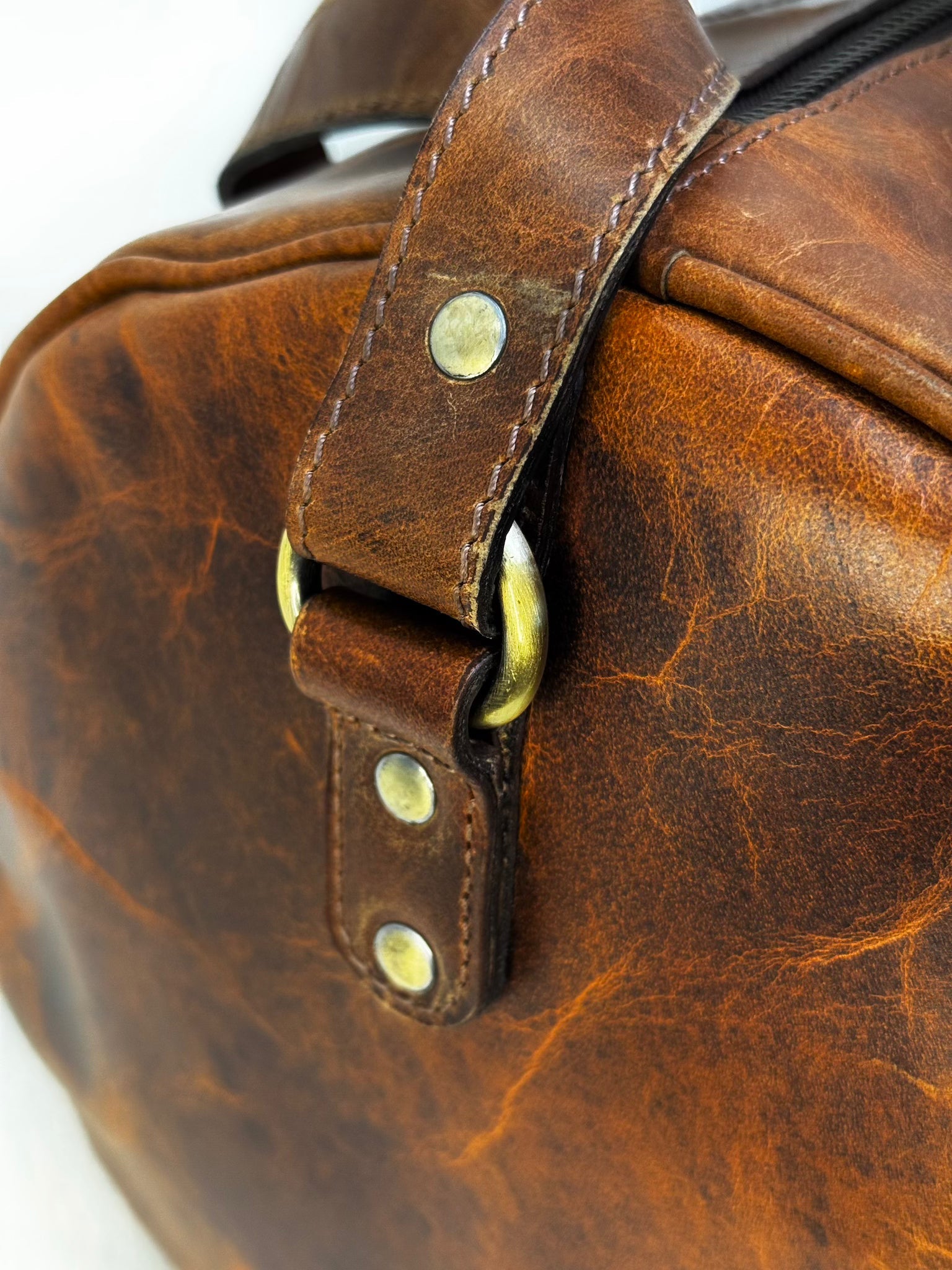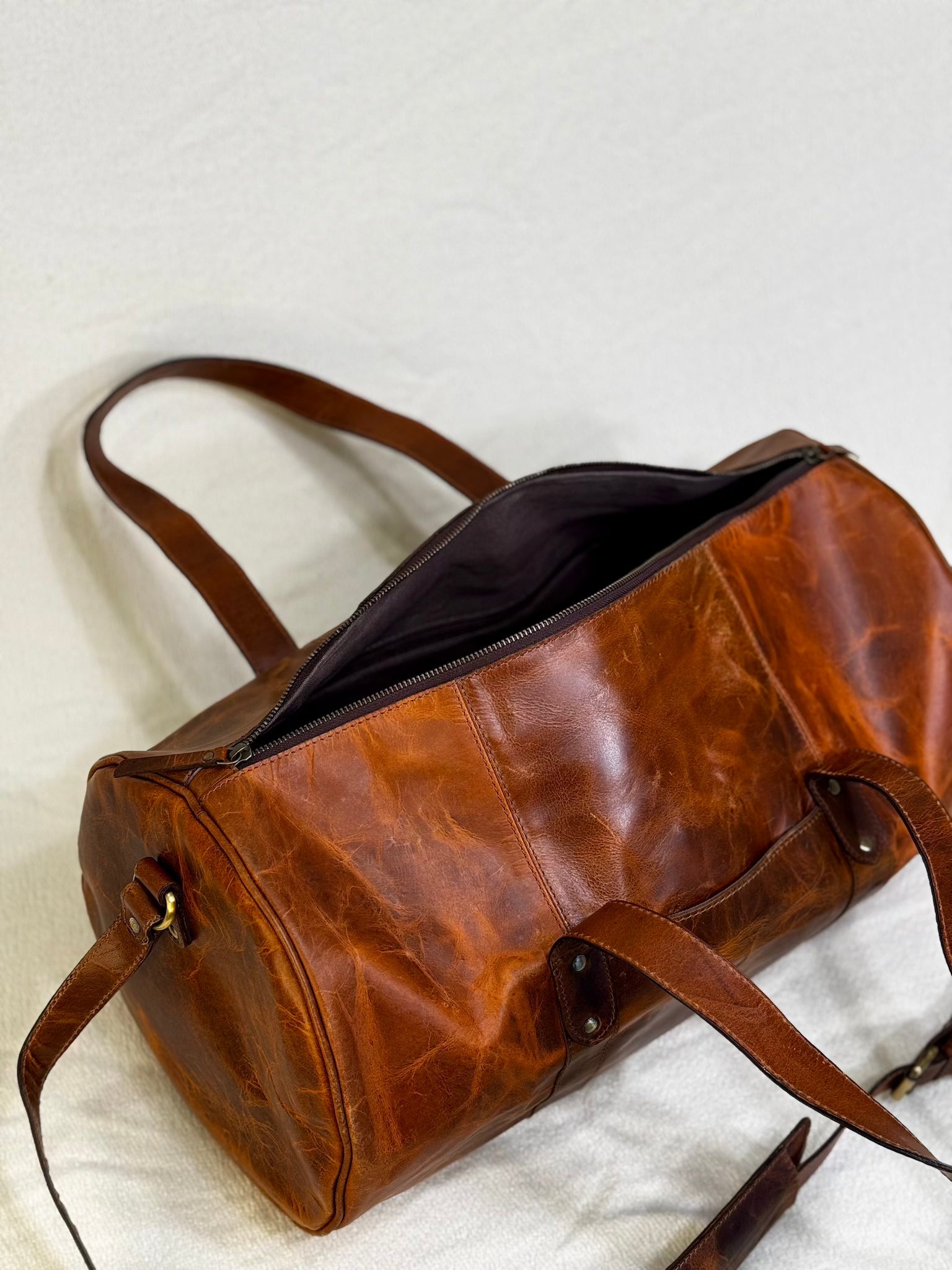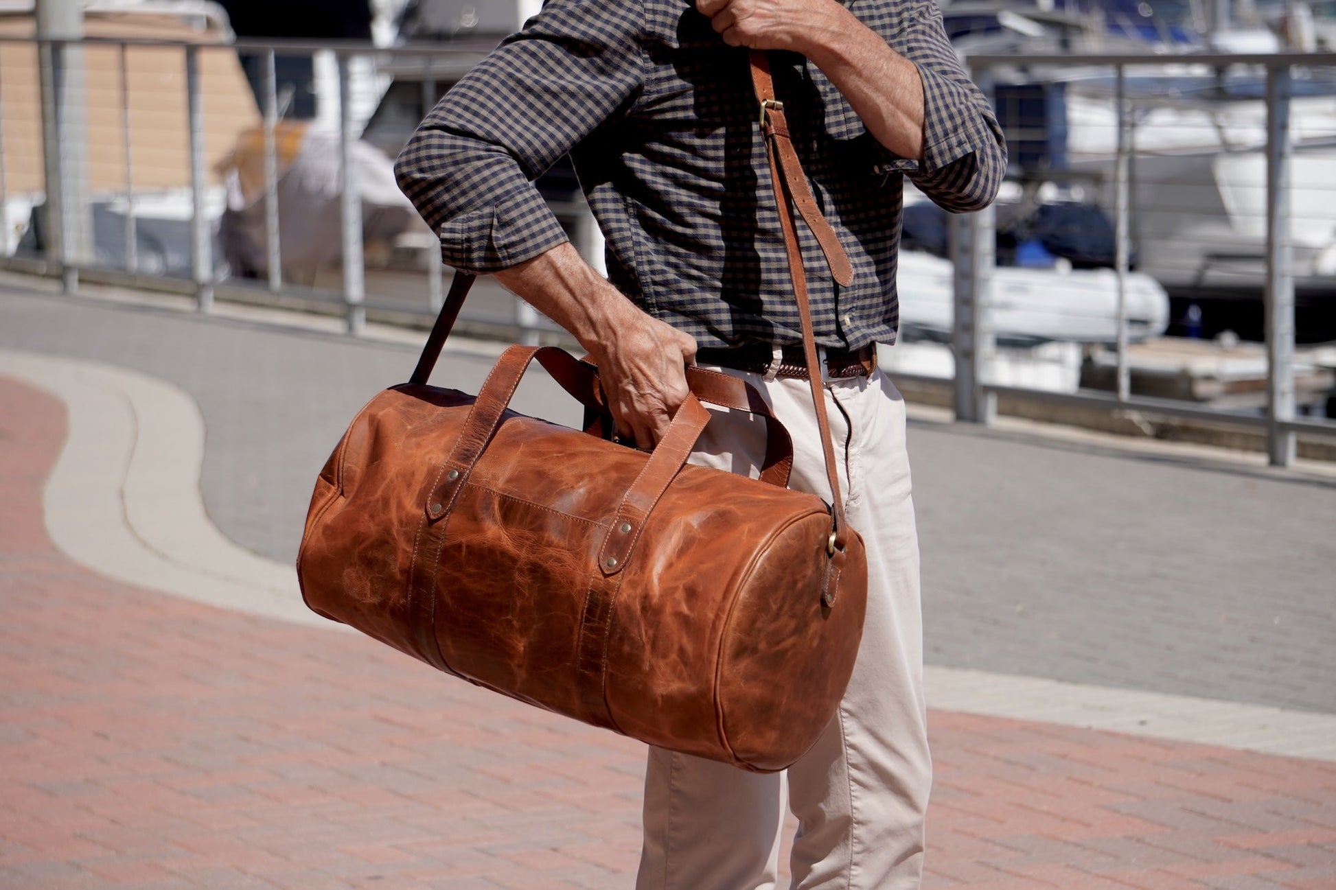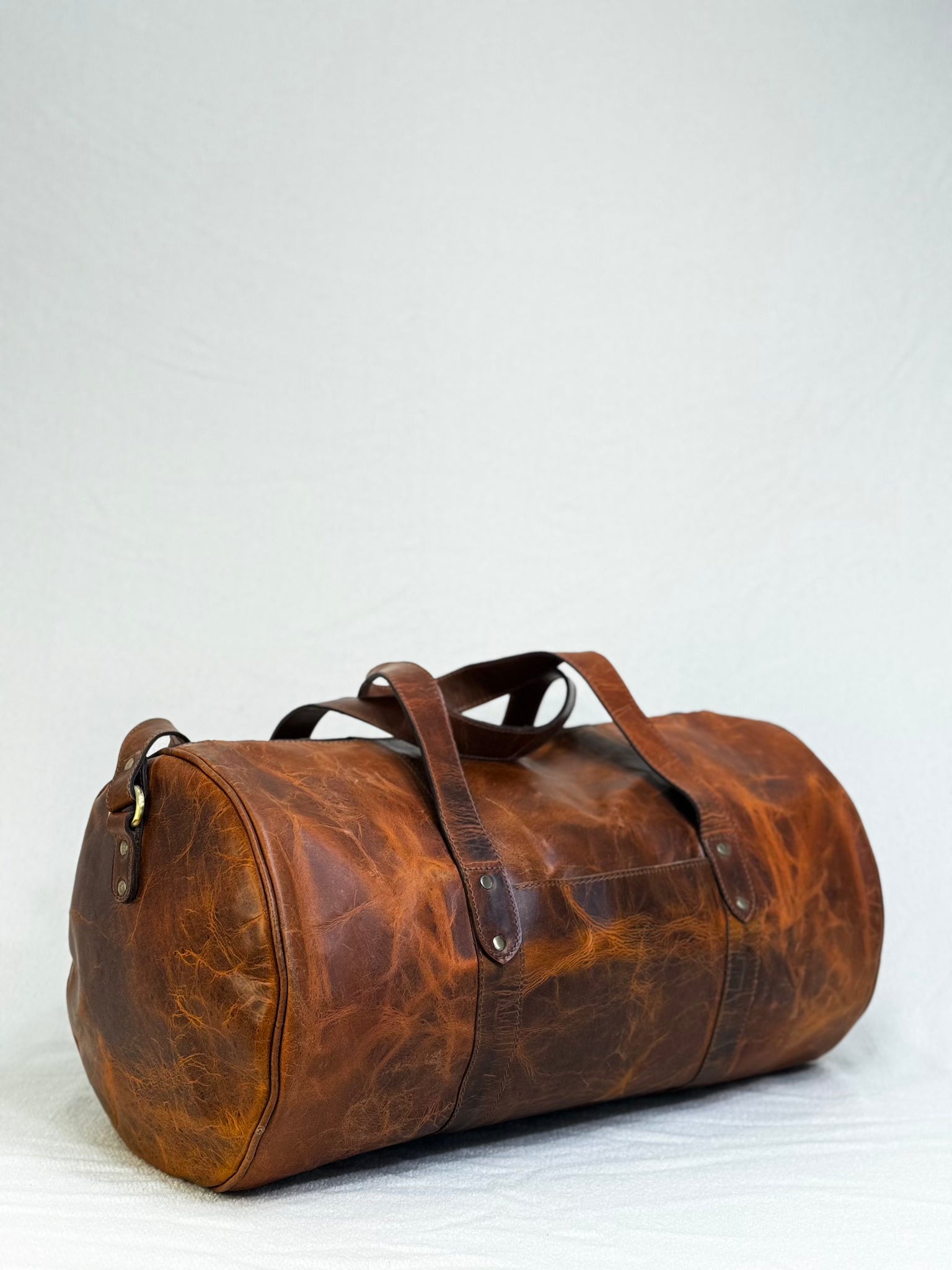 Crafted from 100% full-grain leather, the Roma 2006 is a clean, round-profile duffle designed for timeless leisure. With its 20x11x10.5 inch form and refined simplicity, it feels as at home on a tennis court as it does on a private runway.