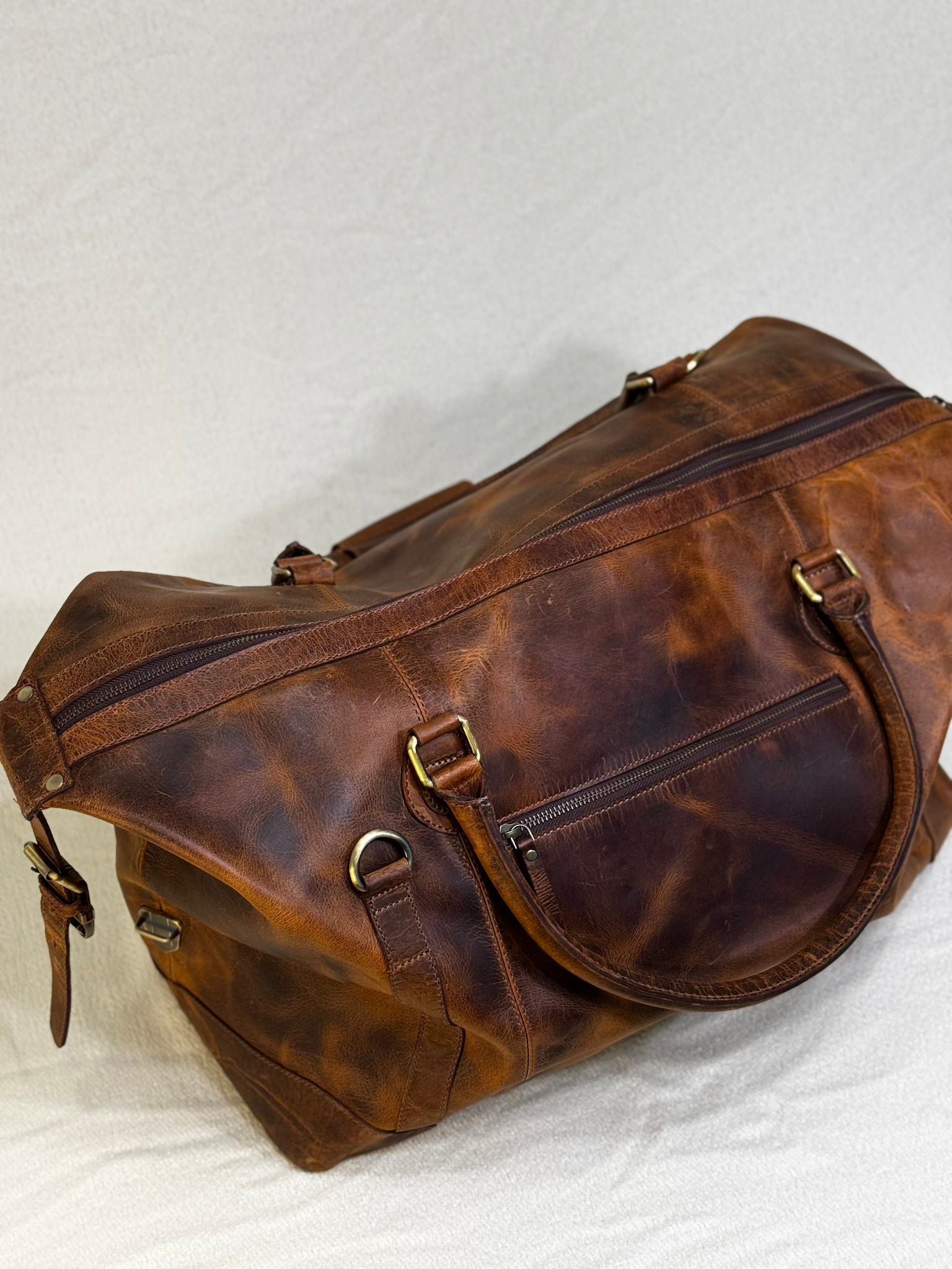 Crafted from 100% full-grain leather, the Vittoria is a heavyweight in form and presence. At 21x13x10 inches, it's one of our largest duffles made for longer stays, road trips or when style demands space.